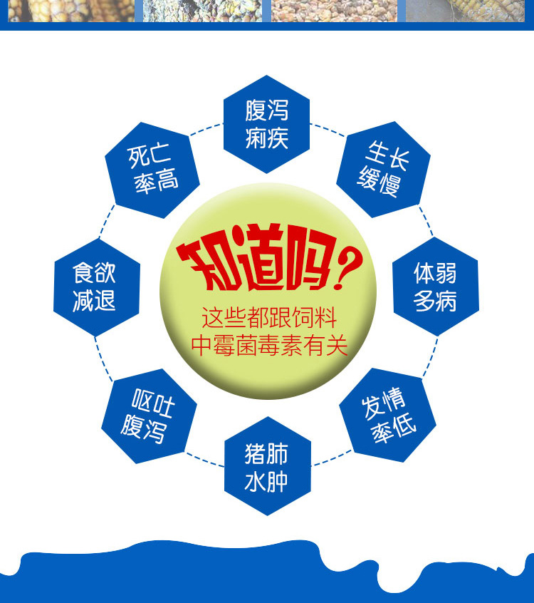 本品適用于黃曲霉素、玉米赤霉烯酮、嘔吐霉素等各種霉菌毒素污染的豬飼料、禽料、牛料。" />