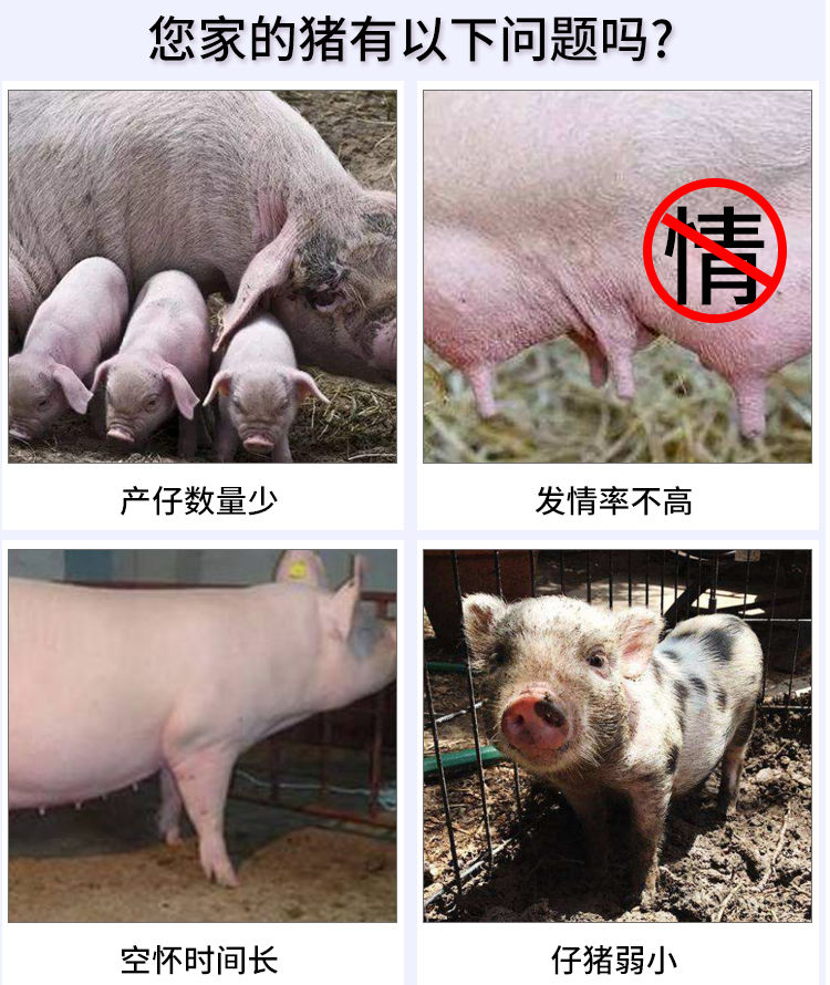 促進(jìn)母畜發(fā)情及同步催情,使發(fā)情期延長,提高受胎率和產(chǎn)崽數(shù)