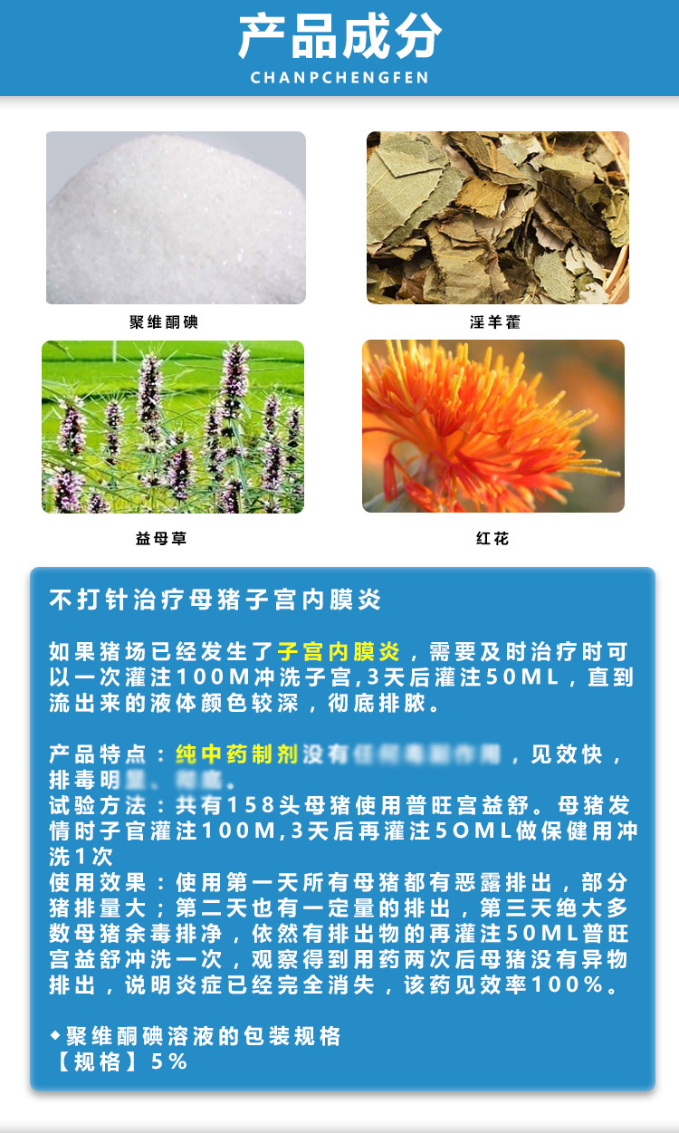 【主要成分】聚維酮碘、淫羊藿、益母草、紅花。