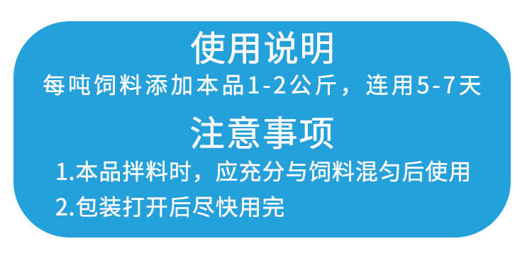 【用法用量】治療量:本品每袋拌200公斤全價飼料,連續7天。