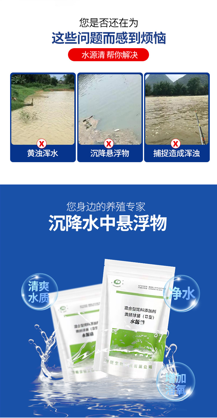 產(chǎn)品簡介:水源清 清爽水質(zhì) 增加溶氧 沉降水中懸浮物 水產(chǎn)常備