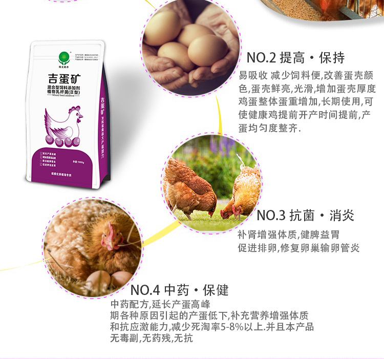 產(chǎn)蛋多了:本品激活卵巢功能,促進(jìn)卵泡發(fā)育、成熟與排卵,延長產(chǎn)蛋高峰期。使用吉蛋礦15-20天,產(chǎn)蛋率可增