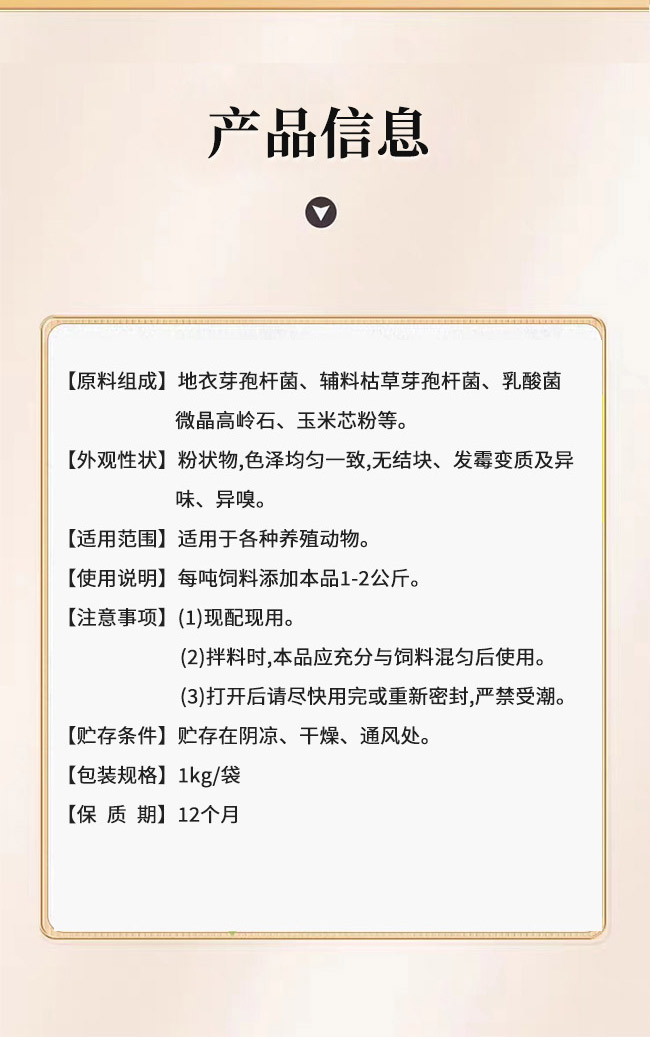 產品簡介:促消化促生長提高飼料利用率增強機體免疫力